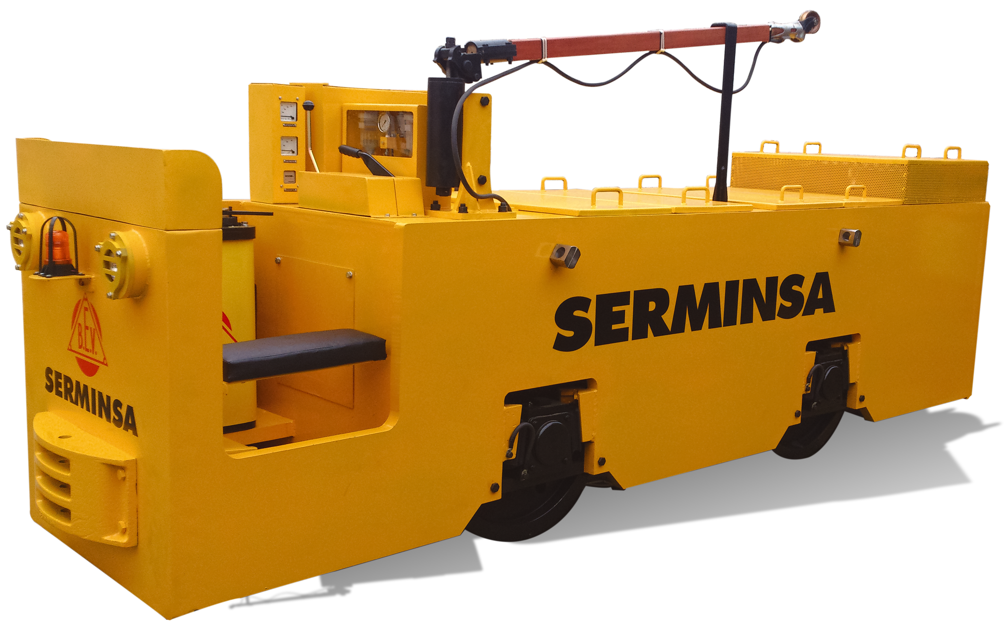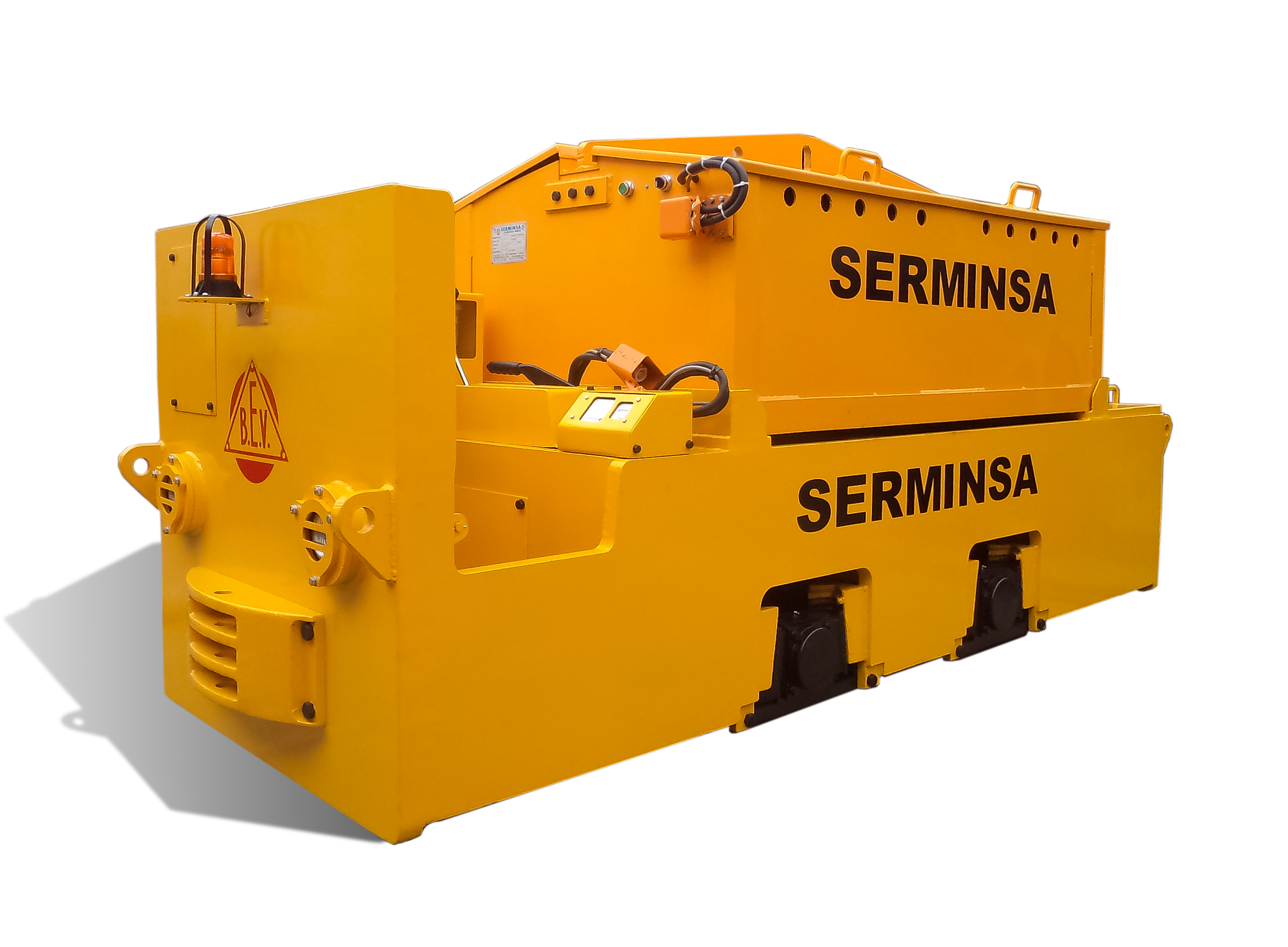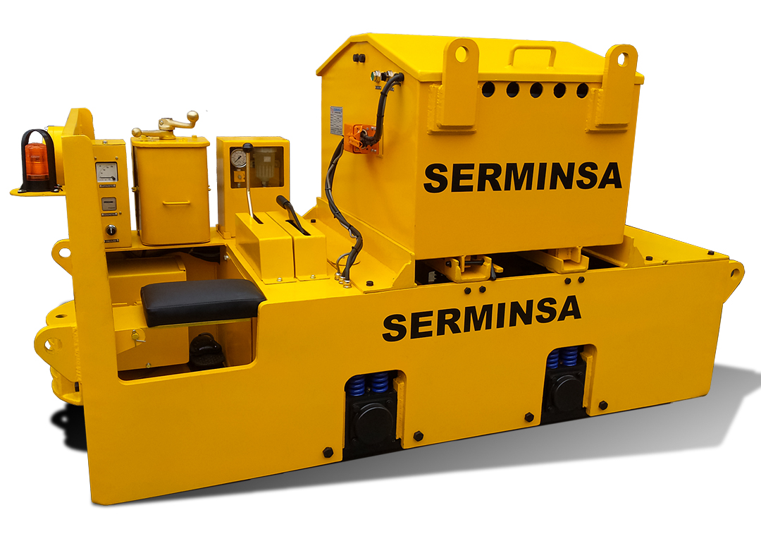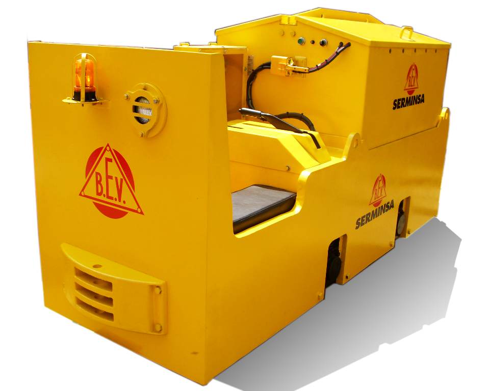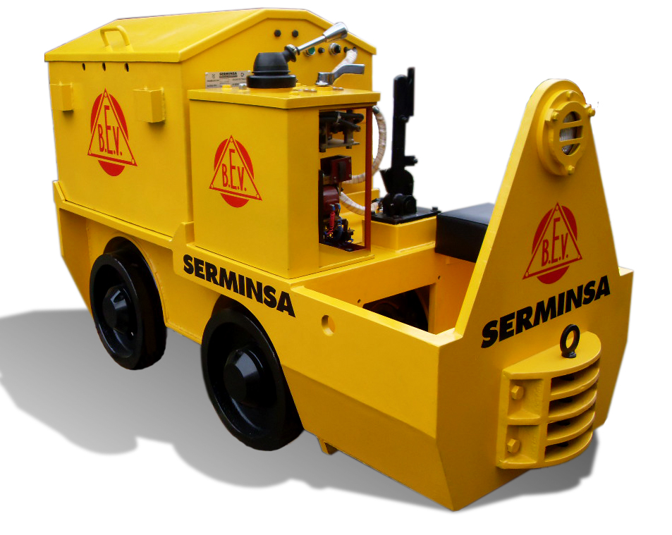SERMINSA fabrica la línea de locomotoras eléctricas marca BEV (British Electric Vehicles), a Batería y/o Trolley, desde 2 hasta 20 toneladas métricas de peso, para cargas de hasta 200 TM. Estos equipos son fabricados bajo los más altos estándares de calidad en diseño, procura de materiales, componentes y manufactura, para cumplir con los exigentes requerimientos de extracción de materiales en interior mina.
