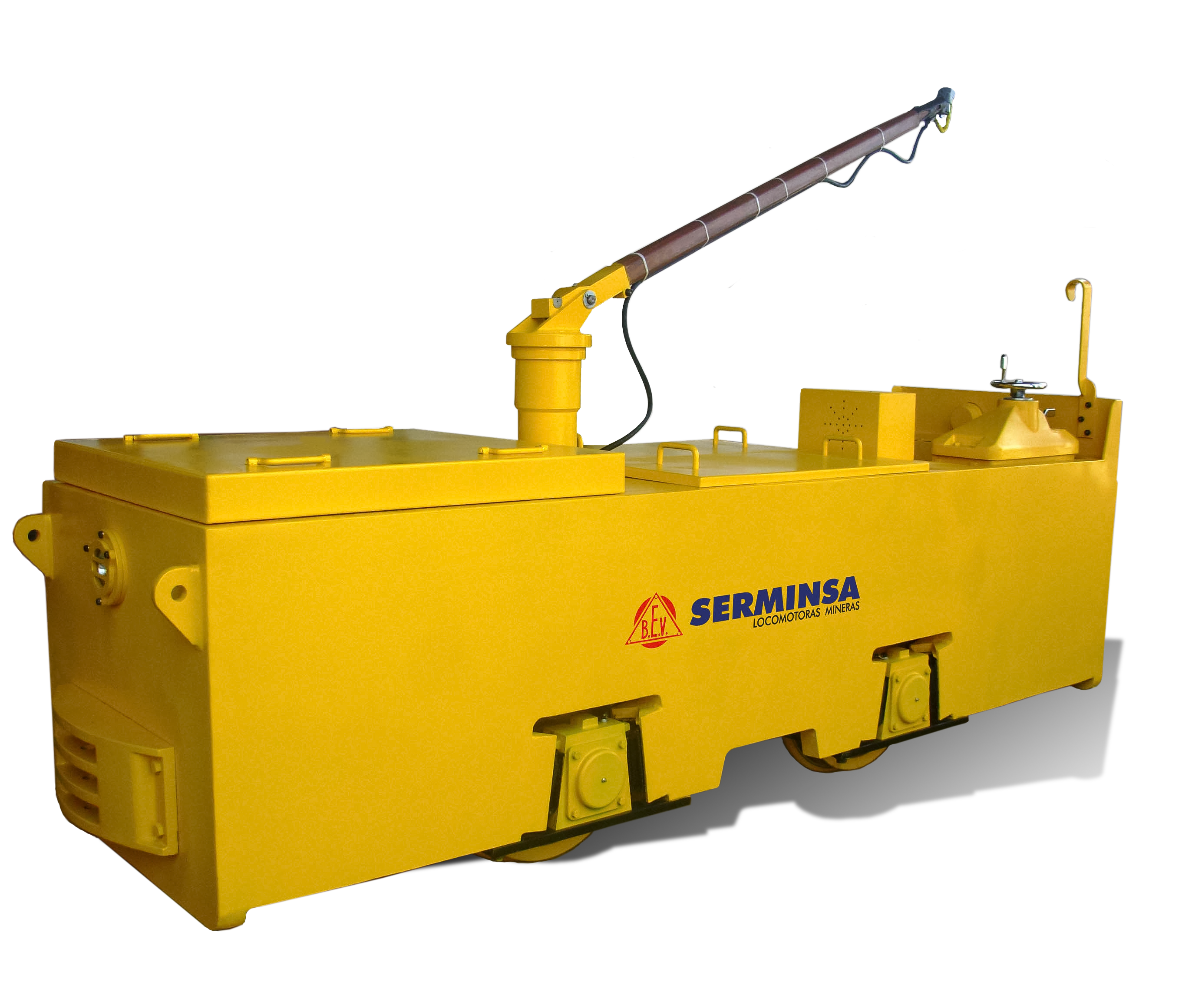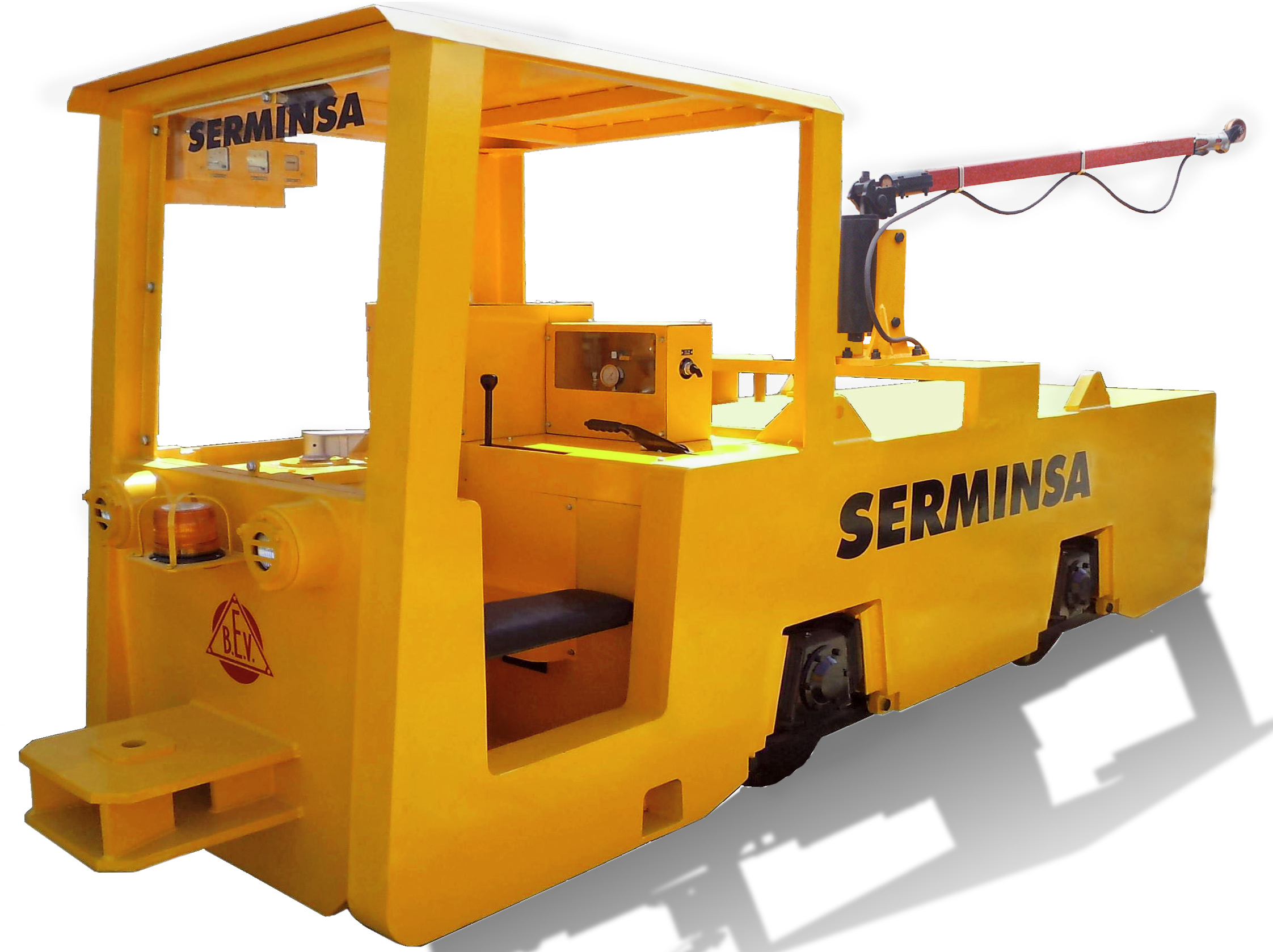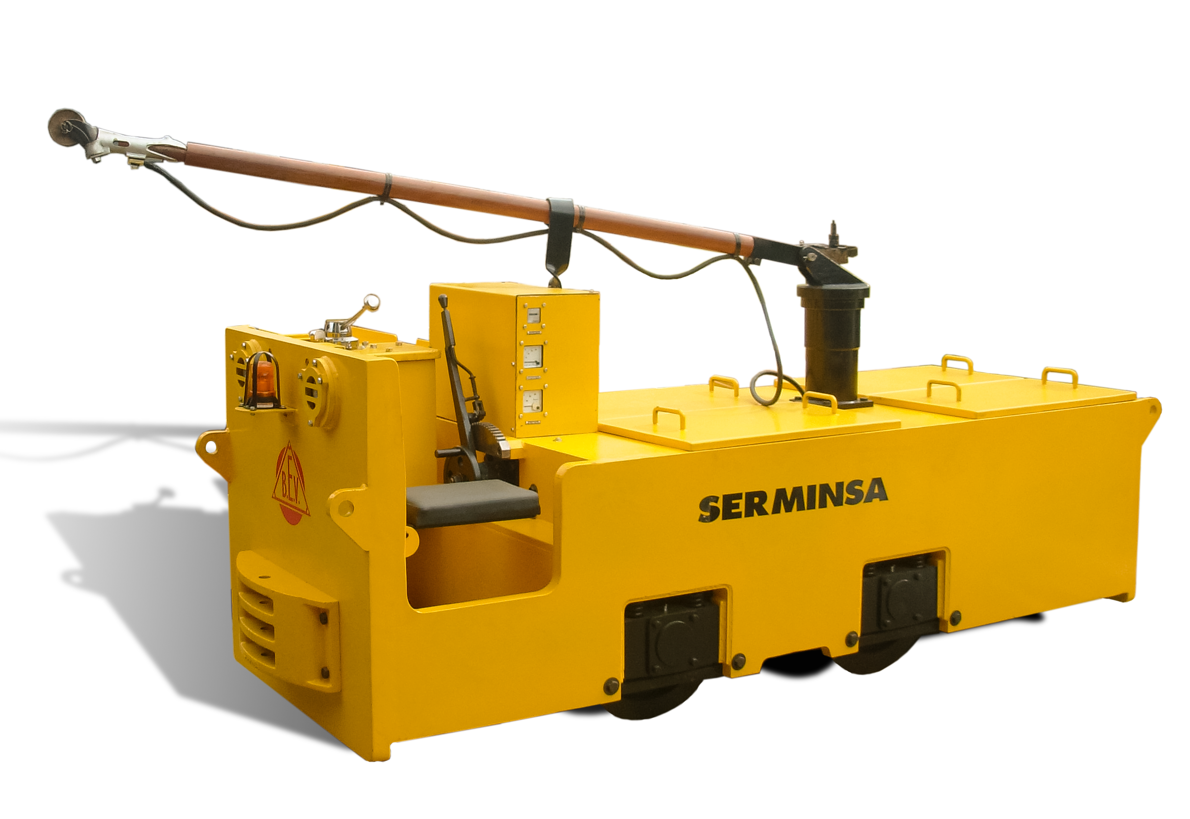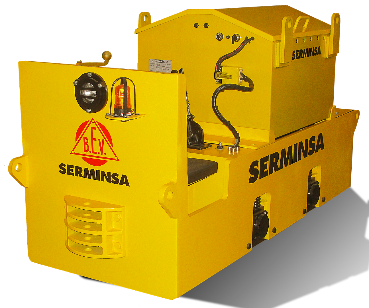 SERMINSA fabrica la línea de locomotoras eléctricas marca BEV (British Electric Vehicles), a Batería y/o Trolley, desde 2 hasta 20 toneladas métricas de peso, para cargas de hasta 200 TM. Estos equipos son fabricados bajo los más altos estándares de calidad en diseño, procura de materiales, componentes y manufactura, para cumplir con los exigentes requerimientos de extracción de materiales en interior mina.